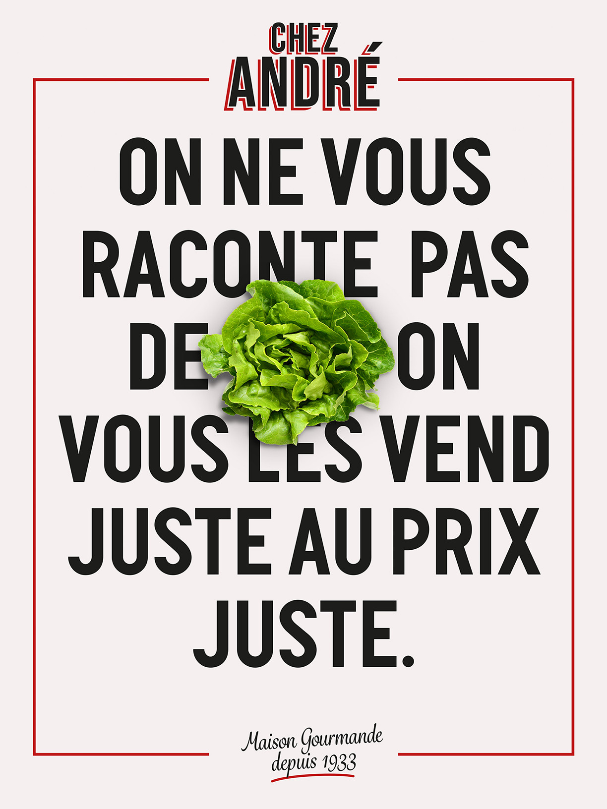 A l’heure où les distributeurs ne parlent que de prix et de pouvoir d’achat à travers des campagnes très promotionnelles, Chez André a souhaité recentrer le discours autour de ce qui fait leur différence : chez eux, c’est la qualité du produit qui passe avant les marges.to
